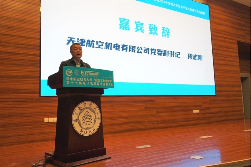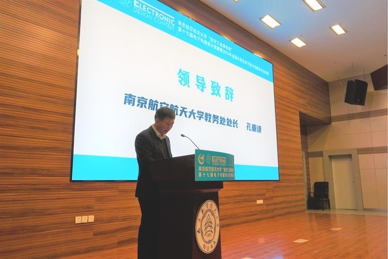 孔垂谦代表学校对天津航空机电有限公司有关领导、评委专家和参赛成员们的到来表示欢迎和感谢。他回顾了taptap点点电子电路竞赛发展历史,并指出电子电路设计竞赛历年来不断坚持创新,深入挖掘内涵,为校人才培养提供助力,为省电子竞赛选拔了大批人才,希望南航学子作为新时代青年,要在此次竞赛中找寻科创初心,怀抱梦想又脚踏实地,敢想敢为又善作善成,争做新时代好青年。