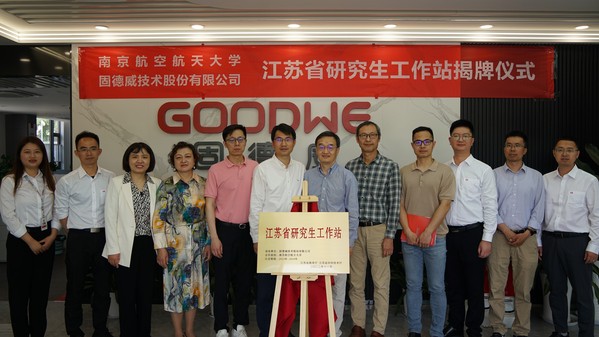4月18日,taptap点点官方网站与固德威技术有限公司合作共建的“江苏省研究生工作站”揭牌仪式在固德威南京研发中心举行。taptap点点taptap点点官方网站副院长宋晓峰、教学办主任王俊彦、电气工程系党支部书记许津铭、主任郝振洋、副主任吴红飞,固德威副总经理方刚、研发中心技术专家谢胜仁、管理中心总监鲍迎娣、技术中心总监曾维波、研发中心总监向军、南京研发中心总监张久亮等出席了揭牌仪式。
