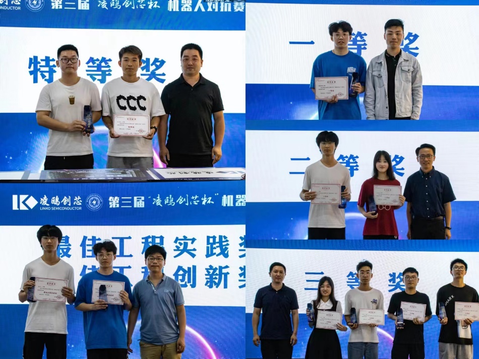 本次总决赛共有十六支队伍参加。经过激烈角逐,决出特等奖一项、一等奖一项、二等奖两项、三等奖四项、最佳工程实践奖一项、最佳工程创意奖一项。在场嘉宾为获奖队伍颁发了获奖证书。在欢乐的气氛和热烈的掌声中,南京航空航天第三届“凌鸥创芯杯”机器人对抗赛圆满落下帷幕。