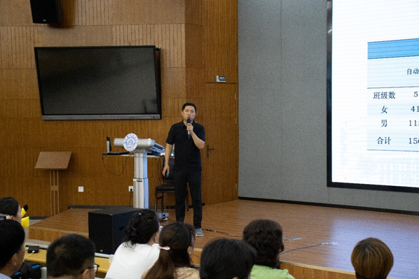 丁琛首先代表学院对家长们多年的辛苦培养表示感谢,然后从学院的学生特点、学风、就业、科创活动、文体活动、学生管理架构等方面详细介绍了学院的学生教育管理工作。丁琛表示学校和家庭是培养孩子的利益共同体,要保持家校教育联动信息对称,同时希望家长能够了解大学教育的特点,了解大学生的心理特点,把握学生发展的节奏和方向,让同学们学会自主成长。