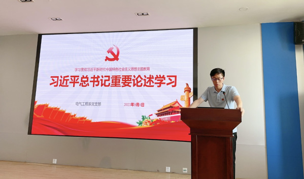 党支部书记许津铭同志从主题教育的重大意义出发,带领大家深入学习了习近平总书记关于党的建设、党内政治生活和高等教育体系的重要论述和指示精神,指出要增强党内生活的政治性、原则性、战斗性,领会以学铸魂、以学增智、以学正风、以学促干的具体要求,使全体党员教师始终保持统一的思想、坚定的意志、协调的行动和强大的战斗力,全面贯彻党的教育方针和新时代人才工作新理念新战略新举措,推动电气学科建设高水平发展。