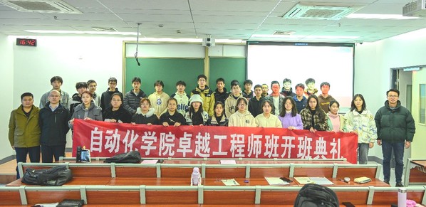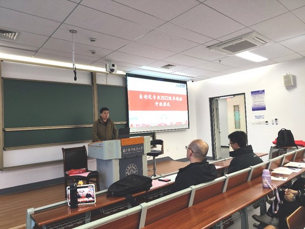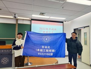 魏佳丹首先对2022级同学进入卓工班这个优秀的集体表示祝贺,其次就国家卓越工程教育培养计划的基本概况和自动化专业卓越计划的建设情况进行介绍并总结了历届卓工班同学取得的优异成绩。魏佳丹鼓励2022级卓越班同学能够传承卓工精神,创造卓工价值,具备全局视野,关注到问题的各个方面,在未来取得更加优异的成绩。之后,魏佳丹为2022级卓越班授旗,随后全体2022级卓工班同学拍照合影留念。
