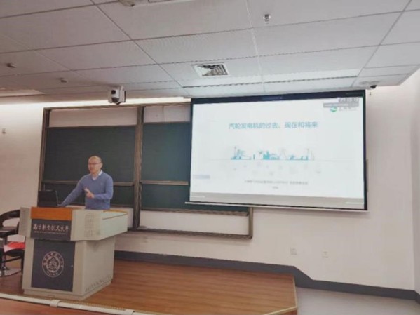 开班典礼结束后,胡磊为同学们开设了题为“汽轮发电机的过去、现在和将来”的工程技术讲座。以汽轮发电机发展脉络展开,介绍了汽轮发电机发展简史、汽轮发电机运行原理、主要制造厂家及其产品,并对上发厂及新产业产品做了介绍。最后,胡磊指出人类的未来是星辰大海,相信通过多方协同育人,一定可以塑造和培养出更多能应对21世纪种种挑战的未来工程师。