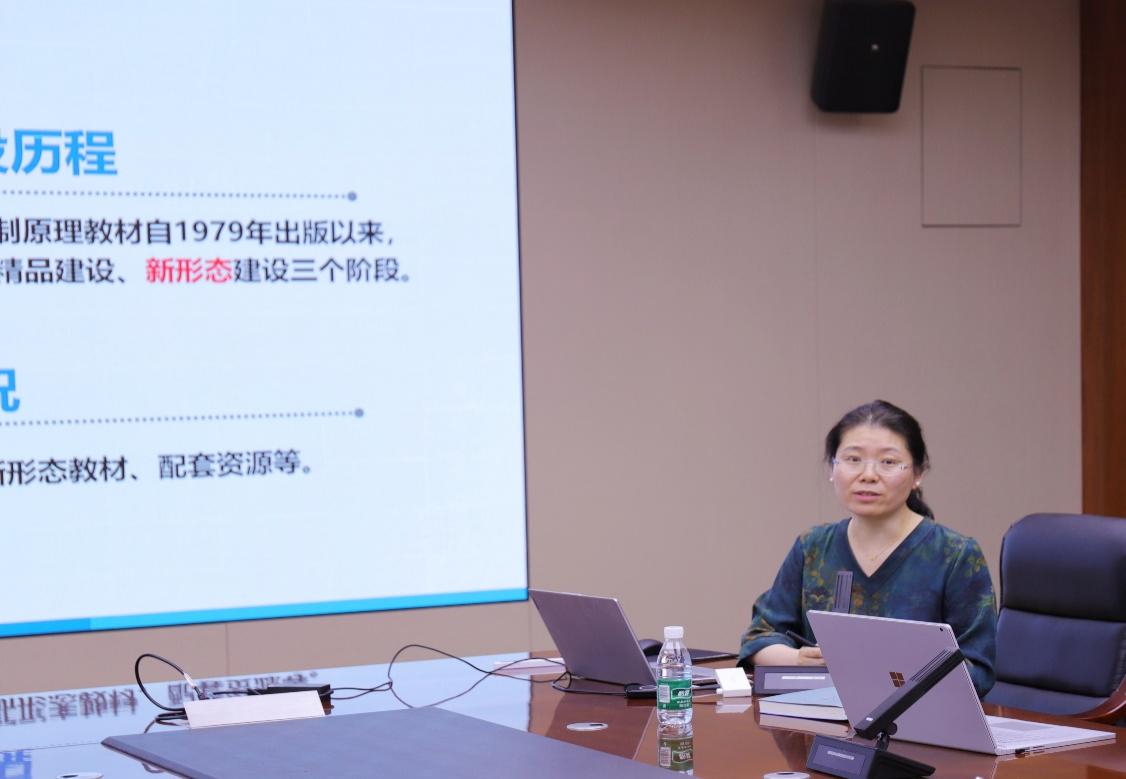 陆宁云代表项目组汇报《自动控制原理》教材的培育建设情况。她总结,本次修订围绕推出系列教材、创新思政内容、加强新形态建设等方面开展,第八版教材已于2023年出版,按时保质完成预期成果。