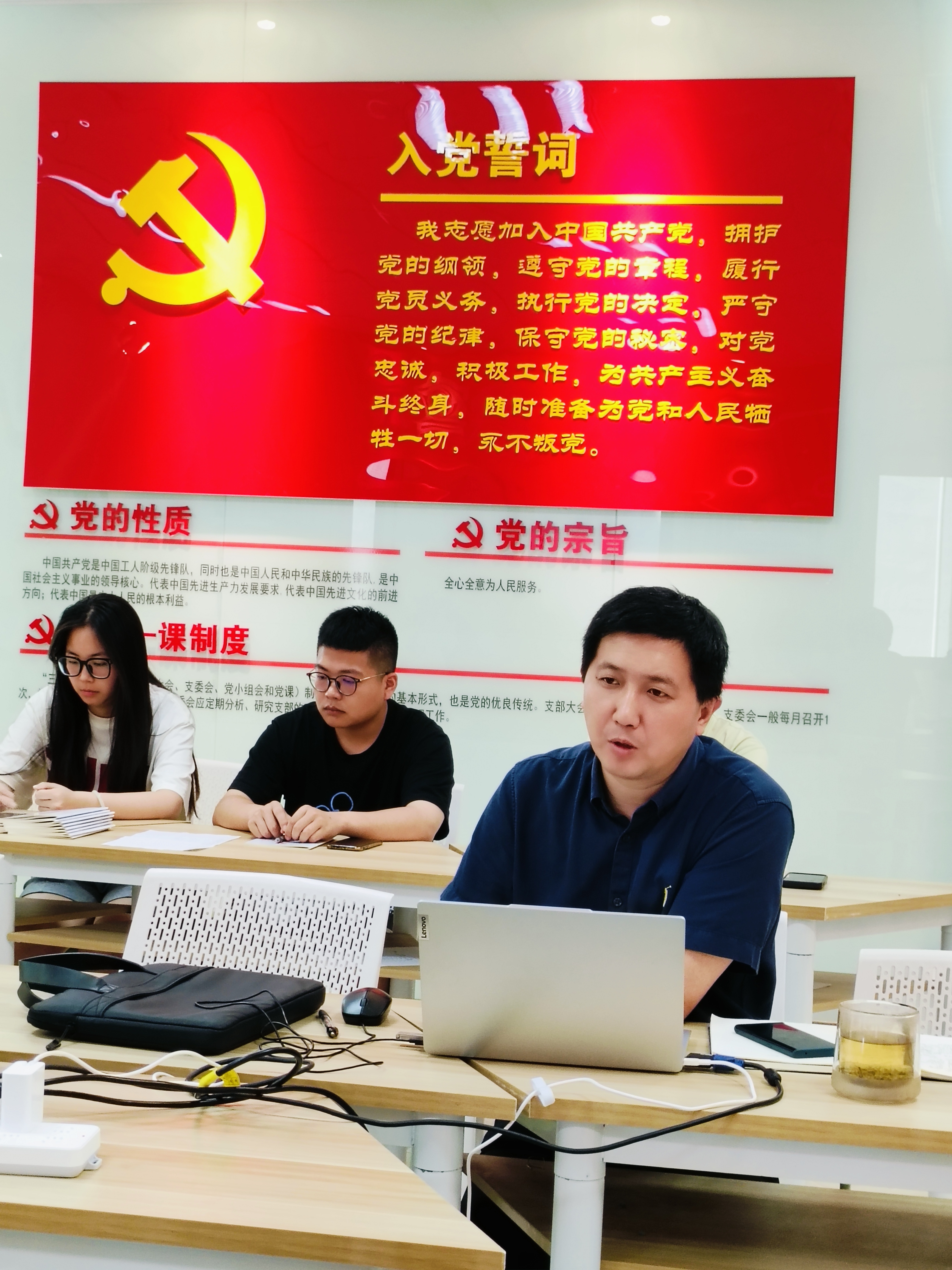 丁书记结合《习近平总书记关于教育工作的重要论述》,对全体党员提出强党性、学党纪、守纪律、常律己、勇担当的要求,并鼓励全体党员坚定理想信念、增强廉洁自律意识,不断提高能力本领,充分发挥党员的先锋模范作用。