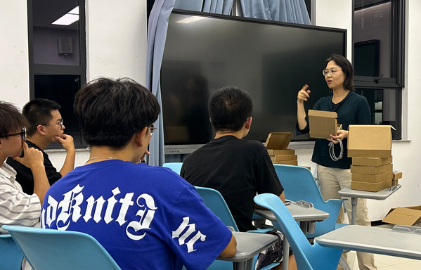 刘文波还表示,同学们在学有余力的基础上,应该积极培养自己多方面的能力。刘文波在班会现场向同学们分发并介绍了单片机,希望大家能自学单片机和stm32,初步了解科研和竞赛,探索个人发展的更多可能。