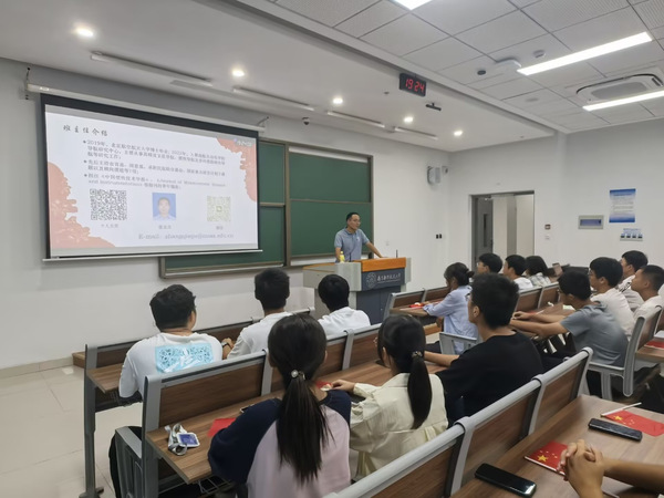 张且且老师首先向同学们进行了自我介绍,并结合自身经历,向同学们强调了南航身为工信部高校的特殊性,以及“控制科学与工程” “双一流”学科的发展优势与强劲实力。他强调,同学们能在这样高起点、高水平的平台学习,更应该积极发挥主动性,在入学伊始就立志报国,将个人的发展和祖国的需要结合起来,在时代的呼唤中成就自己。