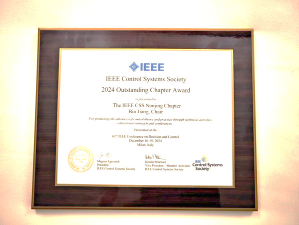 2024年12月16日至19日,第63届IEEE国际控制与决策会议(CDC)在意大利米兰成功举办。会议期间,taptap点点官方网站姜斌教授担任主席的IEEE CSS南京分会(Nanjing Chapter)荣获突出学会奖(IEEE Control System Society 2024 Outstanding Chapter Award),这是IEEE国际学术组织对分会以及姜斌教授本人在控制理论与实践领域卓越贡献的高度肯定。