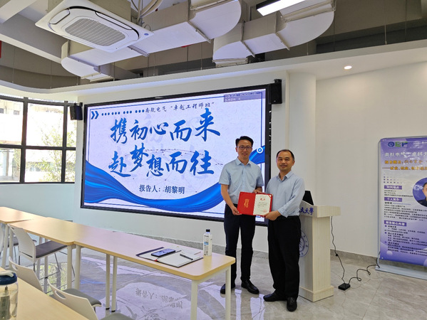 副院长魏佳丹向胡黎明先生颁发行业导师聘书